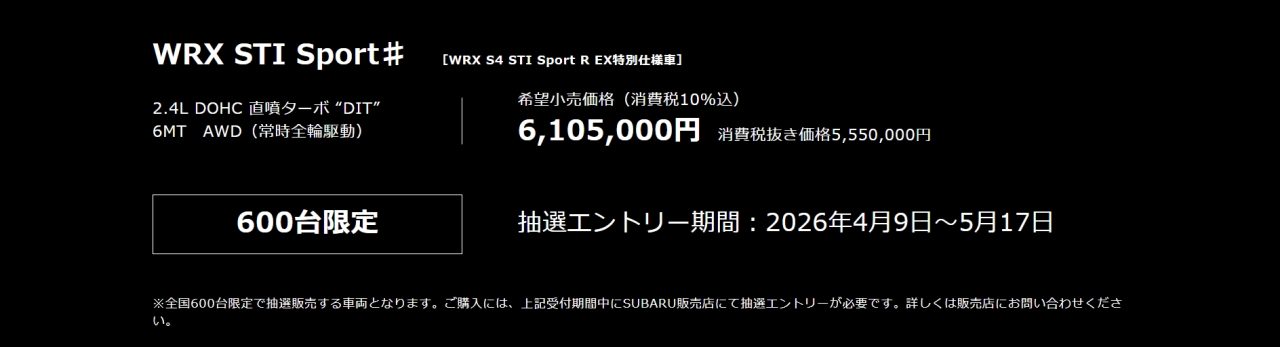 WRX STI Sport# 登場
